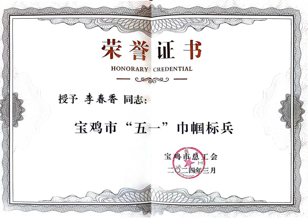 扎根一線 風華無限||寶光股份李春香喜獲寶雞市“五一巾幗標兵”榮譽稱號