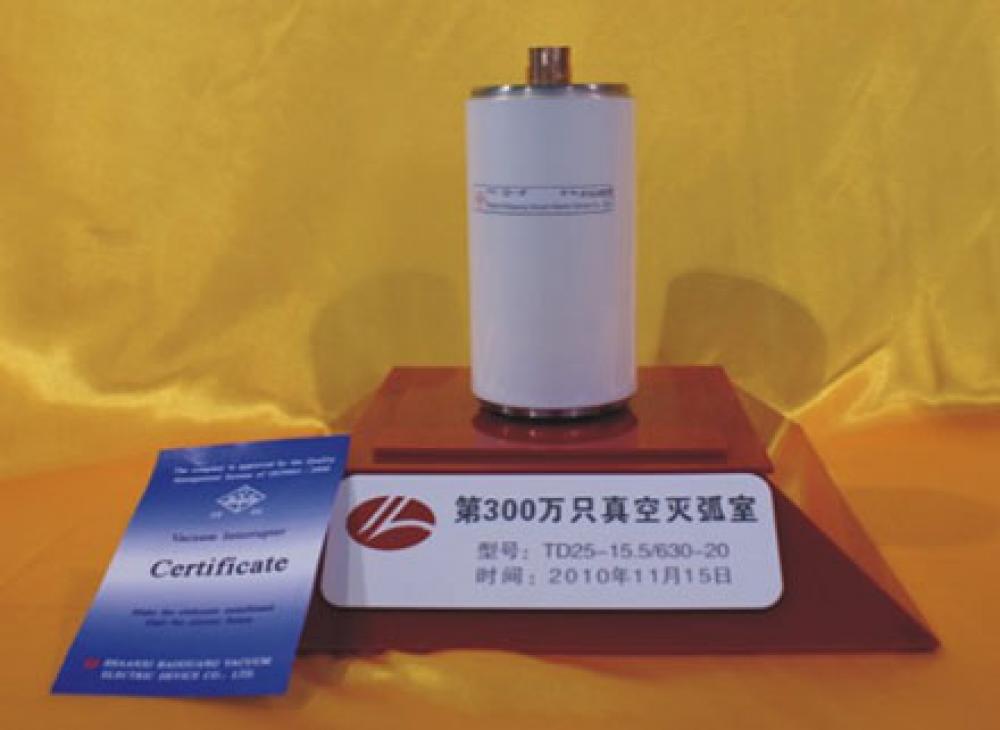 截止2014年,寶光牌真空滅弧室產(chǎn)銷量累計(jì)超過500萬只,年生產(chǎn)能力超過60萬只年出口真空滅弧室10萬只。
