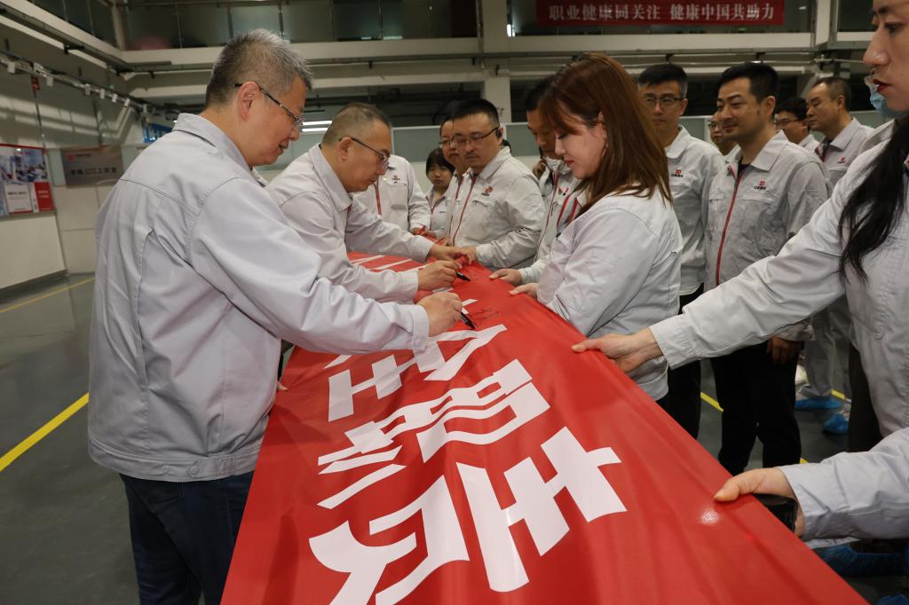 啟動儀式上,滅弧室產品制造部負責人帶領全員進行了安全宣誓并在紅幅簽名。希望通過一系列的安全月活動,使全體員工充分認識到安全生產工作的重要性,確保公司安全生產形勢的穩定和提高。李毅作重要講話,他指出,要深入宣傳貫徹黨的二十大精神和習近平總書記關于安全生產重要論述,認真落實黨中央、國務院決策部署,圍繞“人人講安全、個個會應急”主題,突出寶光股份安全文化培育,推動樹牢安全發展理念,落實安全生產責任,深化重大事故隱患專項排查整治,有效防范化解重大安全風險,堅決遏制重特大事故,以高水平安全保障高質量發展。