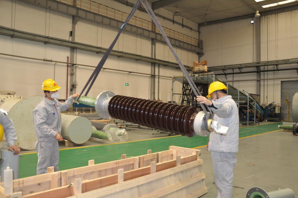 要保證項目順利實施,生產全過程技術支持團隊鉚足干勁、全力以赴。在這個年輕的團隊里,許多人或新婚燕爾、或家有幼子,他們的職責是全程跟蹤生產和試驗,支援監(jiān)造隊伍,做好現(xiàn)場技術支持,加班加點、不分晝夜、長期出差已是家常便飯,但他們無怨無悔。董春雷就是這個團隊的一員。出線裝置是±800kV套管試驗用關鍵設備,直接影響產品試驗的順利進行,為此,董春蕾與同事們一起到零部件廠家監(jiān)造40余天。由于水土不服,董春蕾出現(xiàn)了過敏反應,全身奇癢難耐,他強忍著身體不適堅持完成了任務。“當時是挺難受的,但想到時間緊、任務重,一旦延誤,就會影響套管產品如期交付,影響國家重點項目建設進度,我必須咬緊牙關,不能拖后腿,更不能掉隊。”生產中心主任劉宜斌幾乎每天都堅守在車間或生產現(xiàn)場,了解員工狀態(tài)、關心員工需求;副主任金濤隨時關注生產進度是否與計劃有出入,隨時協(xié)調解決各類問題……