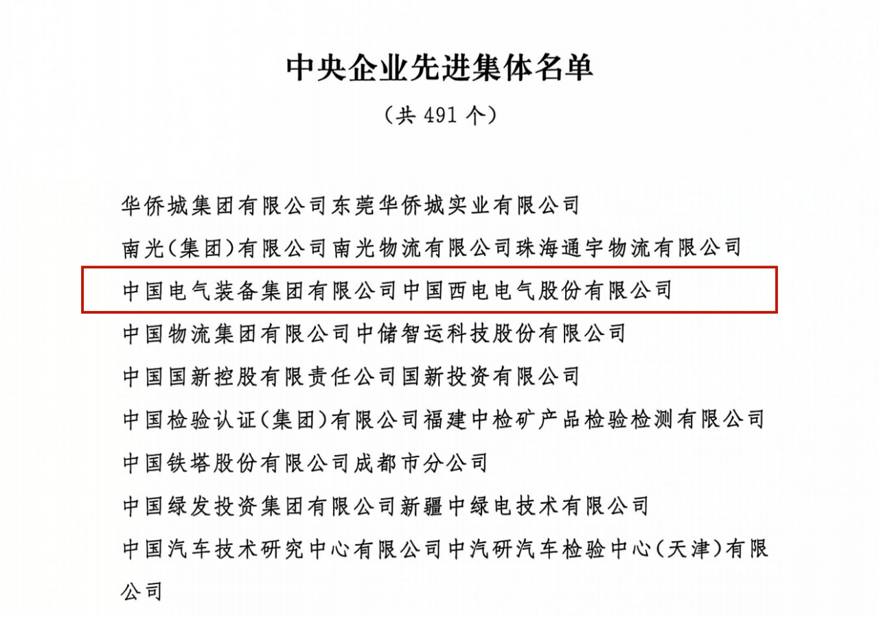 中央企業(yè)先進(jìn)集體和勞動(dòng)模范每5年評選一次,是國務(wù)院國資委系統(tǒng)的最高級別榮譽(yù)。在中華人民共和國成立75周年之際, 為表彰先進(jìn),樹立典型,進(jìn)一步激勵(lì)中央企業(yè)廣大職工在全面推動(dòng)國資央企高質(zhì)量發(fā)展的新征程中建功立業(yè),最終由人力資源社會(huì)保障部、國務(wù)院國資委聯(lián)合表彰。此次榮獲“中央企業(yè)先進(jìn)集體”稱號,不僅是對西電近年來辛勤耕耘和不懈努力的肯定,更是對其在科技創(chuàng)新、產(chǎn)業(yè)發(fā)展和社會(huì)責(zé)任等方面取得顯著成績的表彰。西電將以此次榮獲“中央企業(yè)先進(jìn)集體”稱號為契機(jī),進(jìn)一步加大科技創(chuàng)新力度,提升產(chǎn)業(yè)發(fā)展水平,積極履行社會(huì)責(zé)任,為建設(shè)世界一流企業(yè)貢獻(xiàn)西電力量!