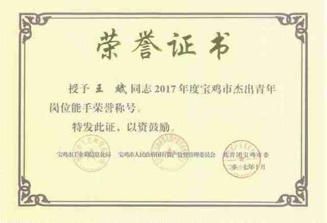 日前,零件事業(yè)部彈性元件產(chǎn)線成型組班組長(zhǎng)王斌,喜獲寶雞市“杰出青年崗位能手”榮譽(yù)稱號(hào)。此次評(píng)選活動(dòng)是由共青團(tuán)寶雞市委、市工業(yè)和信息化局、市人民政府國(guó)有資產(chǎn)監(jiān)督管理委員會(huì)聯(lián)合組織,旨在引導(dǎo)和鼓勵(lì)廣大青年不斷提高職業(yè)技能,增強(qiáng)創(chuàng)業(yè)創(chuàng)新熱情,造就一大批品德優(yōu)良,技能精湛、勇于創(chuàng)新、成績(jī)突出的優(yōu)秀青年人才。據(jù)悉,2017年寶雞市共有10人獲得“杰出青年崗位能手”榮譽(yù)稱號(hào)。