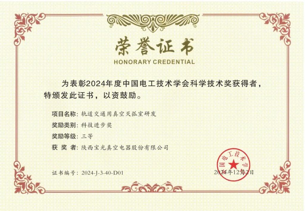 祝賀!寶光股份2個項目榮獲中國電工技術學會科學技術獎